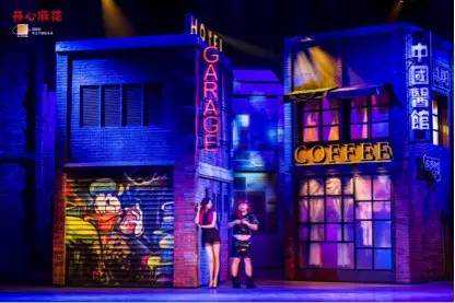 精细的舞台布景,极具观赏性。值得一提的是,女警丽萨回忆起已故父亲时的情节闪回,通过透明帷幕、灯光、投影等多媒体技术的运用,形成了让人震撼的舞台特效。