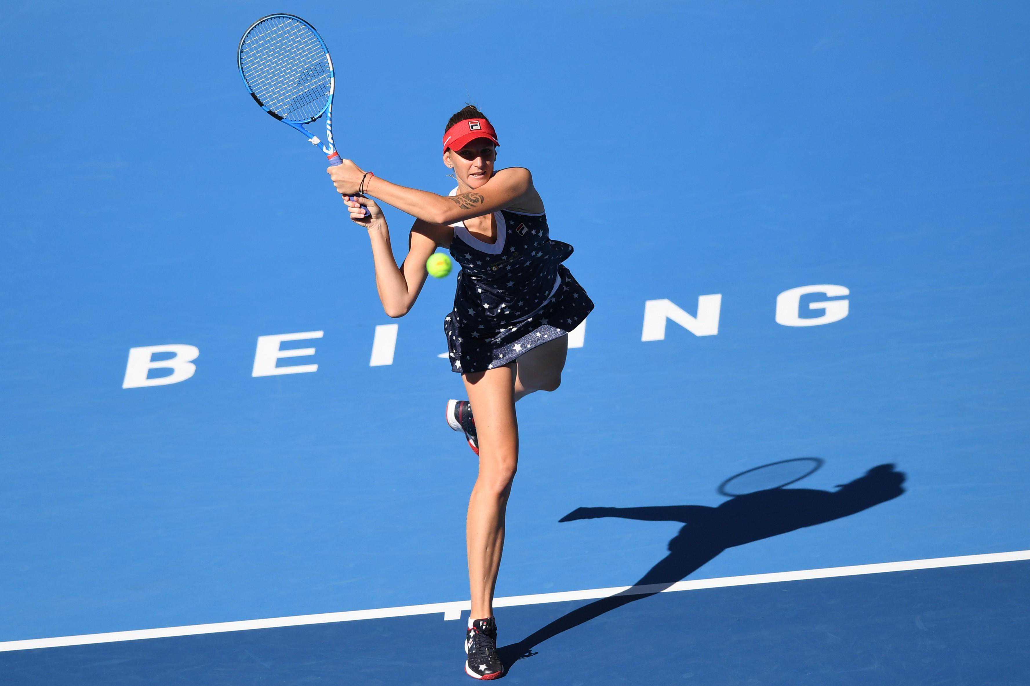 捷克球员普利斯科娃在2018年中网比赛中击球