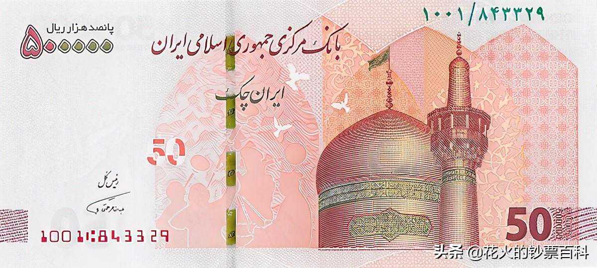 伊朗国内流通纸币中的最高面额为100万里亚尔,非常之高。