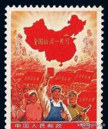 小一片红,全名《全国山河一片红》,是1968年由邮电部发行、北京邮票厂印制的邮票。邮票图案为工农兵手持《毛主席语录》,背景中“革命委员会”的红旗汇成的红色海洋和工农兵群众热烈欢呼的场面,上方为一幅中华人民共和国地图,地图上除台湾省外全部绘成大红色,上面印有“全国山河一片红”金字。