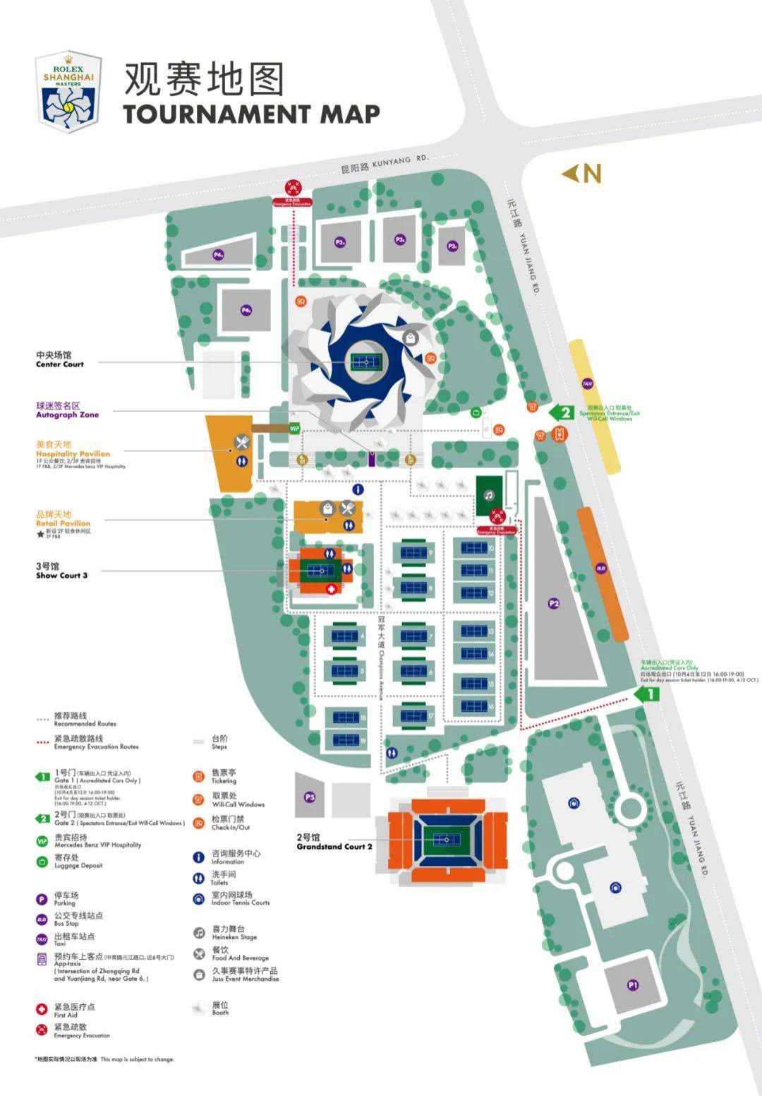 赛场开放时间(从元江路5500号旗忠网球中心2号门进入赛场的时间):
