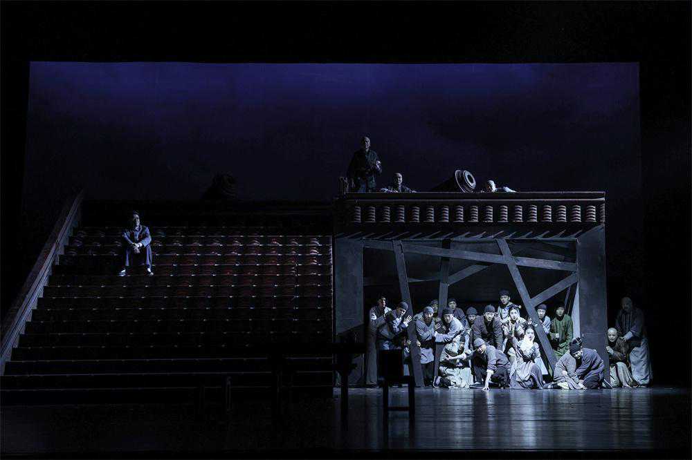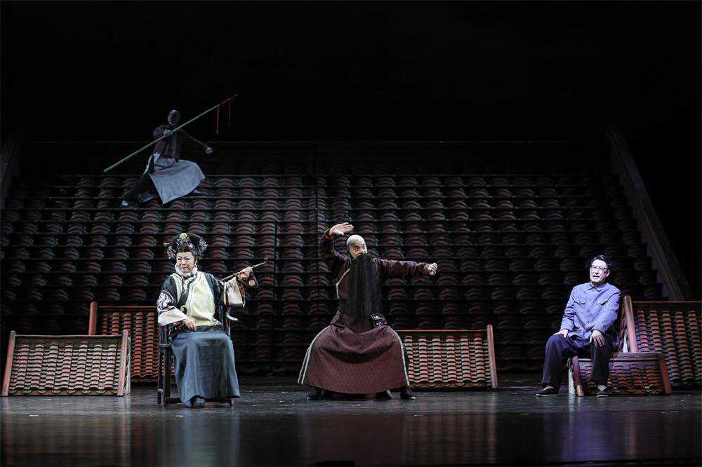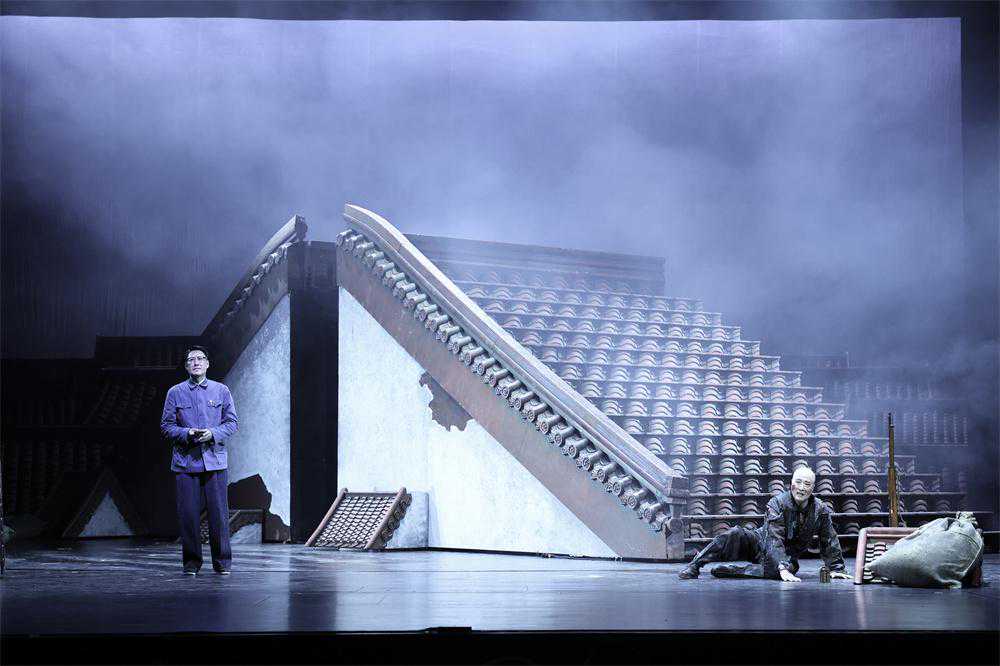 作品以老舍先生的第一视角来进行叙述,将自己出生前后,清末的北京城生活风貌进行了刻画,以群像的方式讲述了百年前的民族命运。二度创作中,导演冯远征、闫锐以尊重原作精神内核,突出人文关怀为重点,给予作品更现代的演绎。“要有古典和现代相结合的审美风格。”虽然是一部京味儿戏,但舞台上不见传统的四合院等元素,而是一眼看到充满象征意味的红色屋顶等流动装置,演员表演也打破传统的空间限制,产生多维度的对话。这样的舞台呈现,让观众对京味儿戏有了新的观演感受。