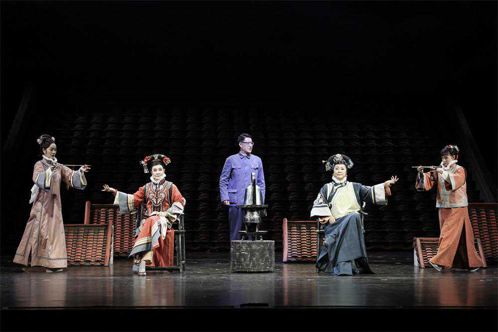《正红旗下》剧照,梁丹妮饰演姑妈(左二)、王茜华饰演大姐婆婆(右二)