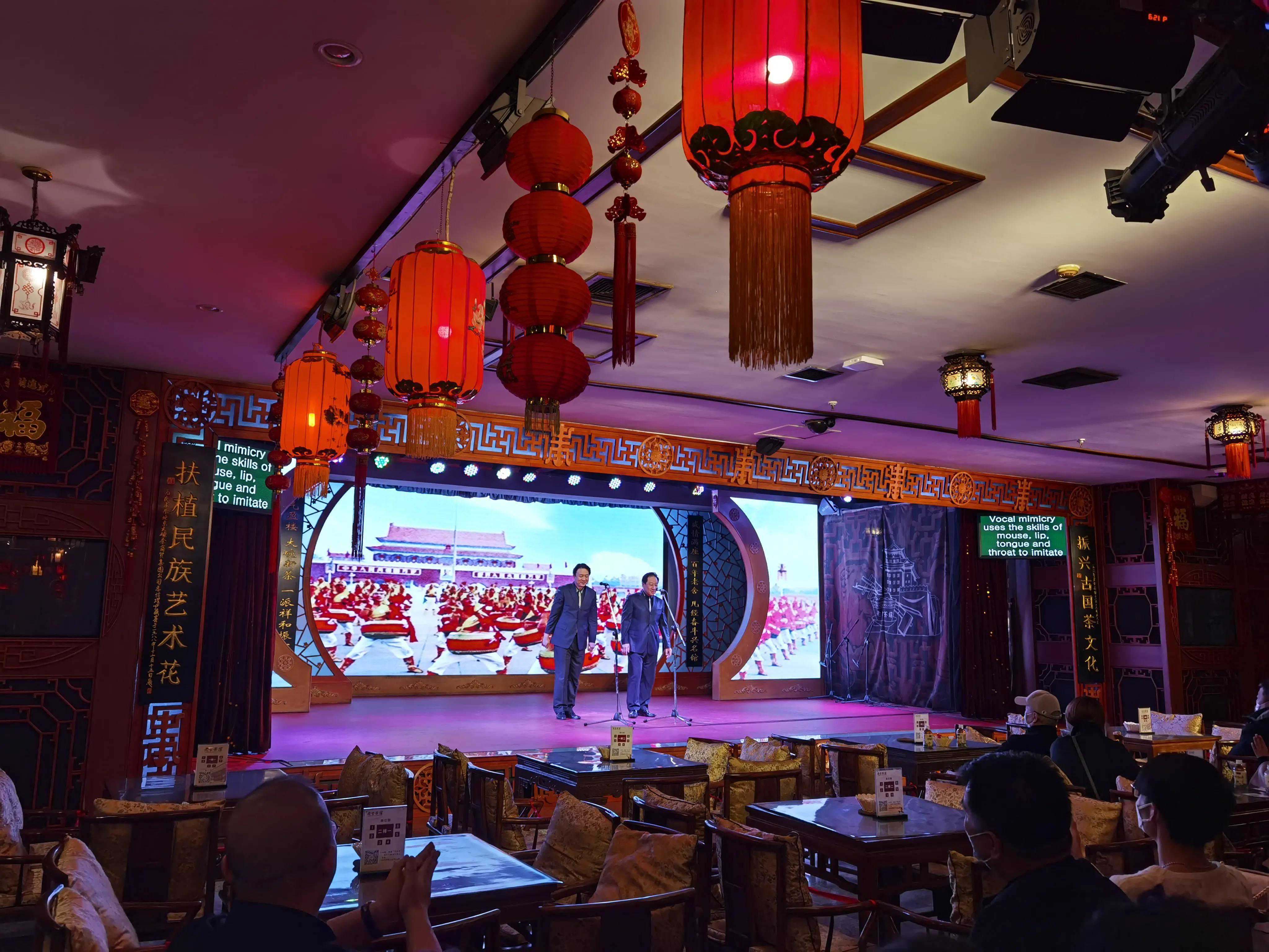 昨晚与家人到"老舍茶馆"欣赏了一台综艺小节目。