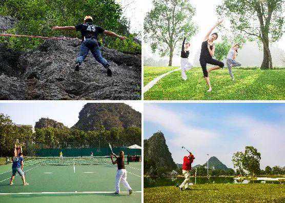 这里尽享自然特色,美式丘陵国际标准36洞高尔夫球场,可以独揽桂林山水盛景。