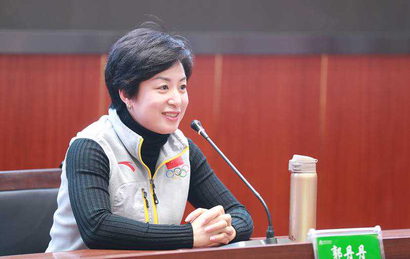 郭老师用非常风趣的表述方式讲述了自己如何从一个怀揣舞蹈梦想小女孩一步步成长为中国首个滑雪世界冠军,郭老师讲得轻松自如,从教练的关怀、队友的支持到家人的理解,从失败到辉煌,现场笑声此起彼伏。同时,对于现在广大的冰雪运动爱好者,尤其是正在学习滑雪项目的青少年,郭丹丹也给出了自己建议:勇敢是学习冰雪运动的必要条件,但是不要冒然行事,一定要做好专业的防护,接受专业教练的指导和保护,不要急功近利,过于追求速度和难度。在不断训练的过程中,慢慢体验冰雪活动的乐趣。