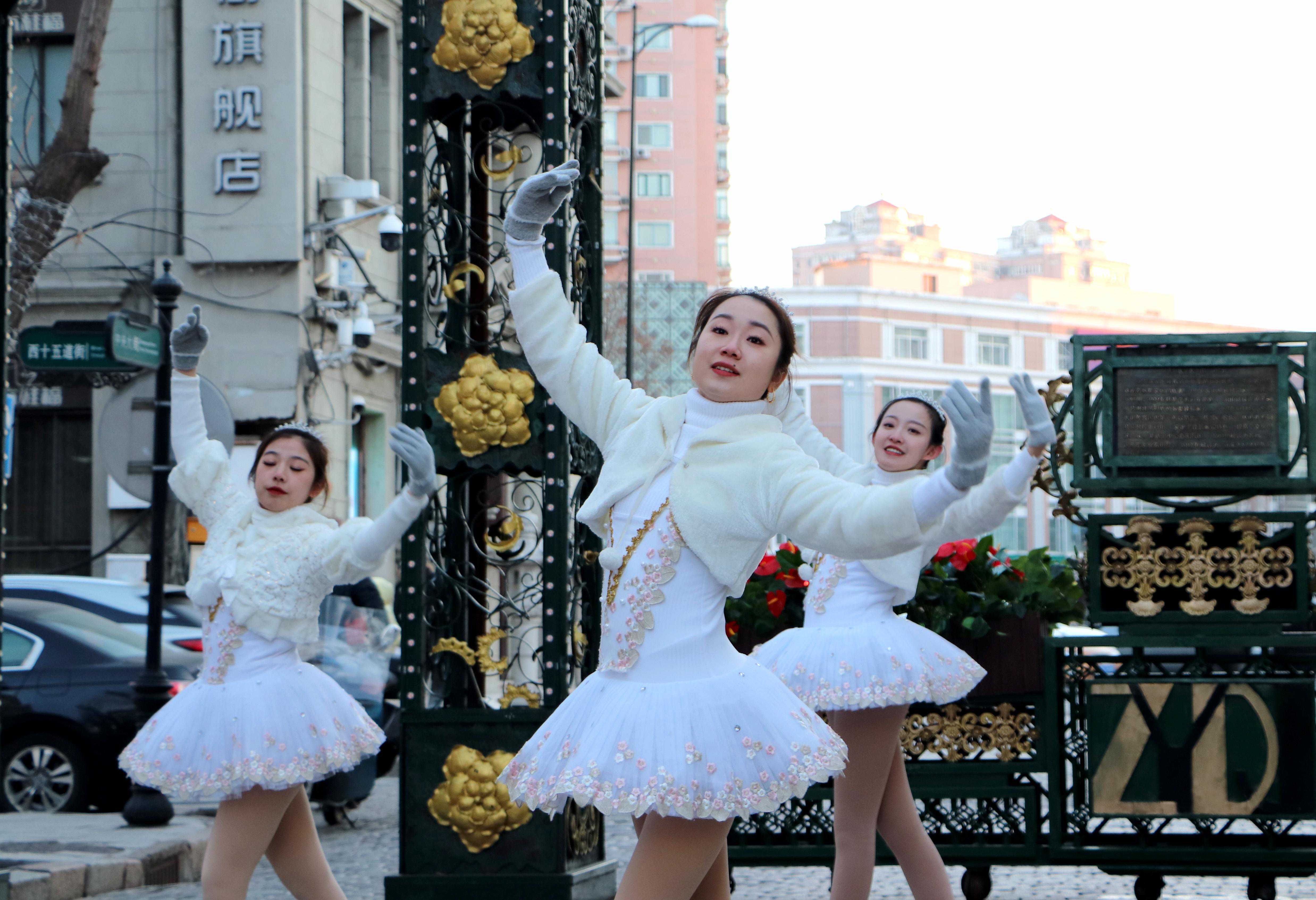 当浪漫的芭蕾舞《天鹅湖》在老街上演,配以冰雕雪塑装扮下美丽的中央大街,如此唯美动人的画面,就在老街上演。