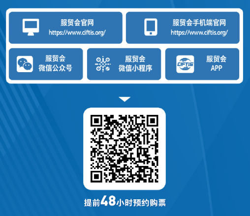 目前,服贸会的预约购票平台已开通,想去现场参观的小伙伴可通过服贸会官网、手机端官网、服贸会微信公众号、小程序、App等平台预约购票,或直接扫描二维码提前48小时预约购票。
