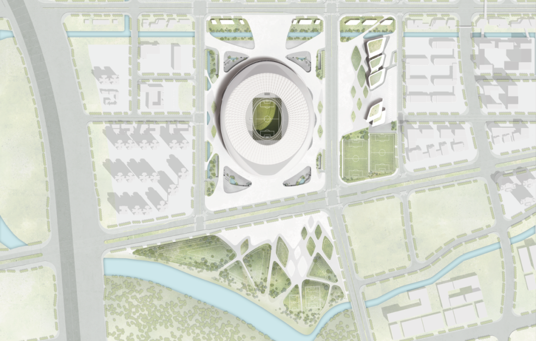 和最初的球场设计方案相比,新方案在球场容量和建筑高度上均有所压缩。此前,该球场曾被设计可容纳高达10万人,力争打造“世界规模最大、座位数最多的国际顶级专业足球场”。当时,球场的“荷花”造型设计方案也曾引起广泛争论。