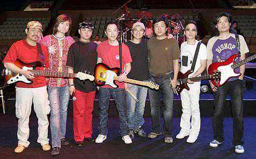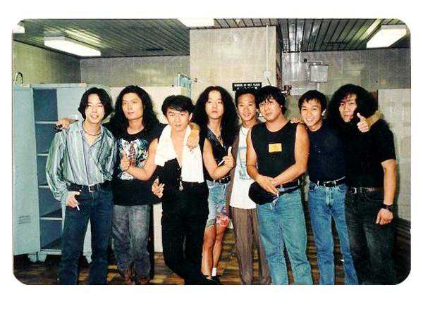 这是后来我们乐队与黑豹乐队的合影,那会儿窦唯真是帅,仅次于我耶。