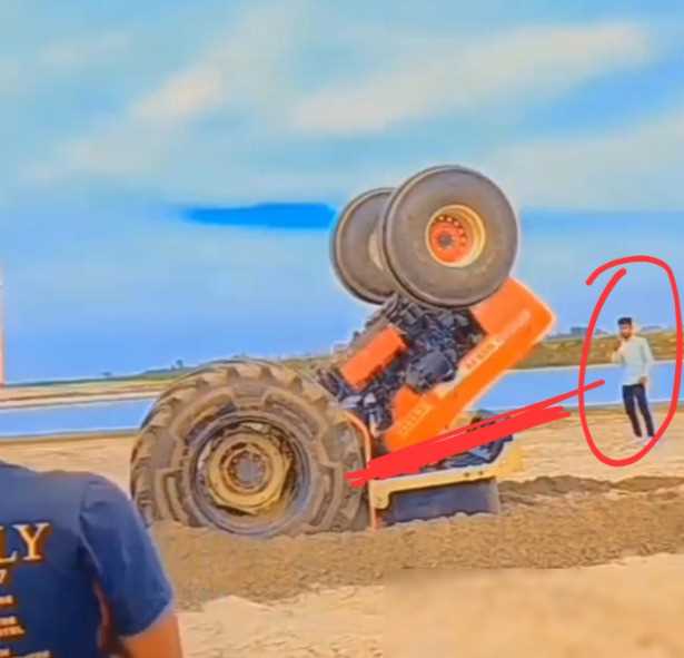 网友们也兴奋地围观,觉得这是一场极具刺激感的表演。然而,就在拖拉机几乎倒立的瞬间,一切都失控了。尼苏手持手机,不顾一切地展示自己的杂技技能,但平衡却在瞬间被打破。拖拉机疯狂翻滚,最终砸向了尼苏所在的位置。