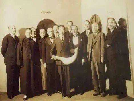 梅兰芳(中)手持回力球拍,此图摄于天津回力球馆