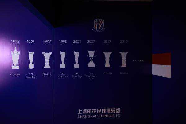 进入申花球队更衣室,首先看到的是设计低调的荣誉墙,记录着申花曾经获得的冠军荣誉。