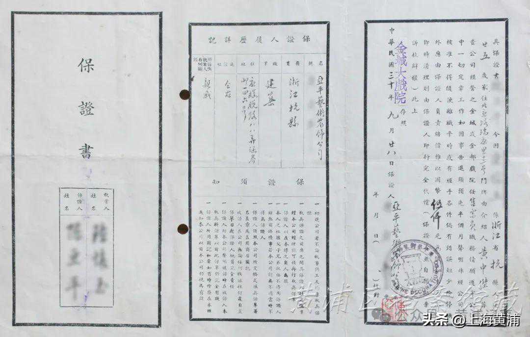 1941年金城大戏院职工入职保证书(黄浦区档案馆馆藏)