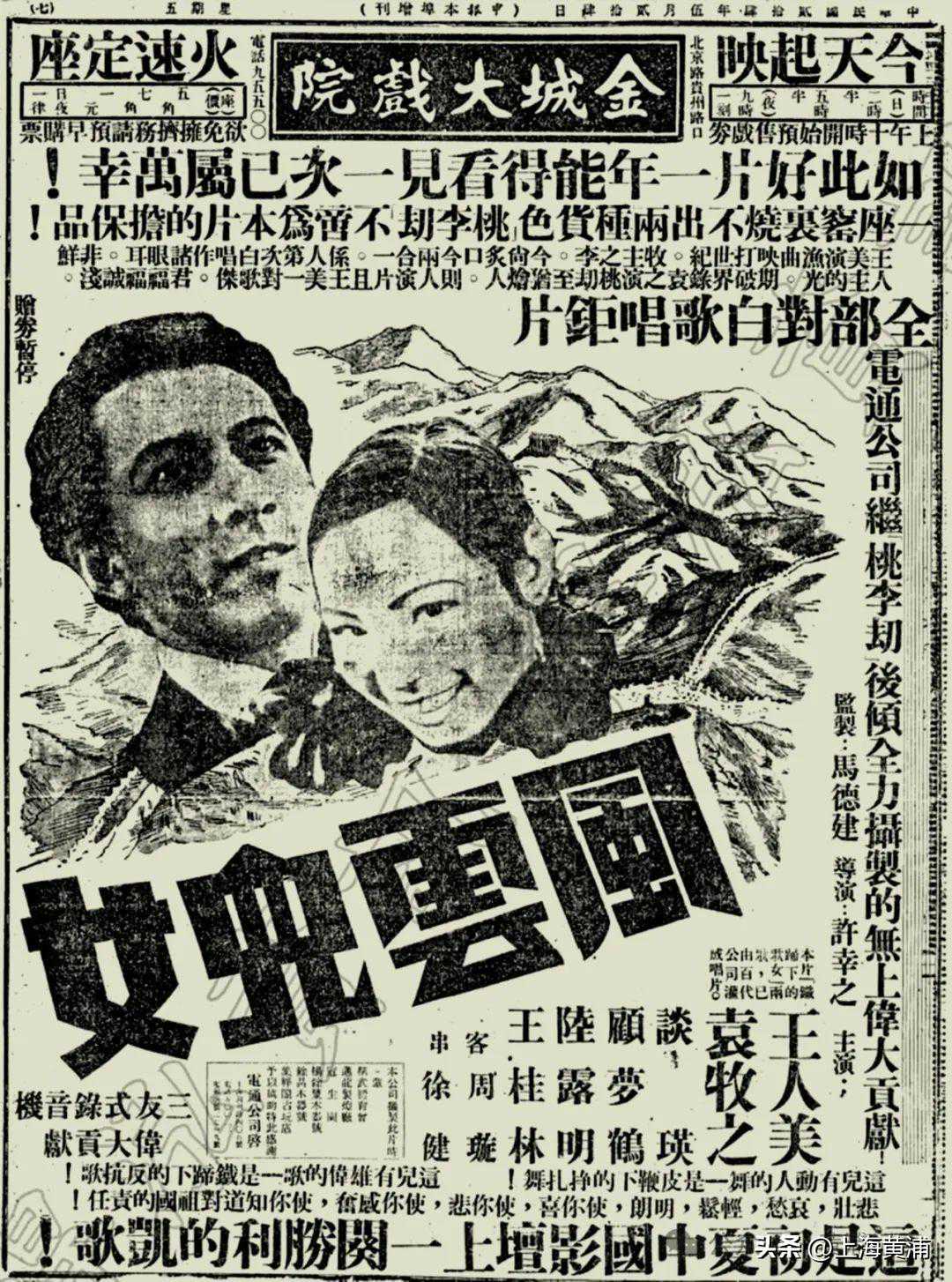 《申报》刊登金城大戏院上映《风云儿女》报道