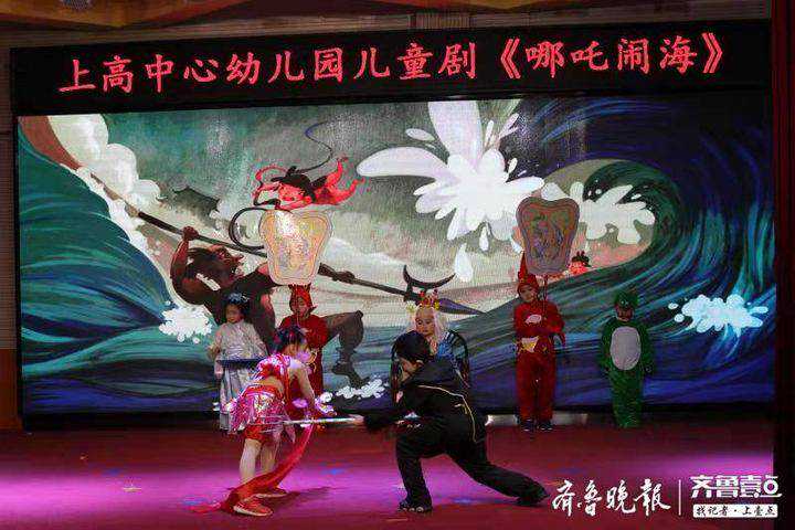 为了让绘本剧表演更加生动形象,老师们精心选编剧本、制作道具、布置场景,营造故事氛围。演出时,孩子们身穿各种角色衣服,手持各种道具,脸上洋溢着幸福的微笑,徜徉在充满幻想的美好世界中。他们稚嫩的表情、天真的话语,不断迎来观众们的热烈掌声。大班的《哪吒闹海》场景布置新颖,剧情跌宕起伏,孩子们的表演更是精彩纷呈,一下子就吸引了大家的视线。