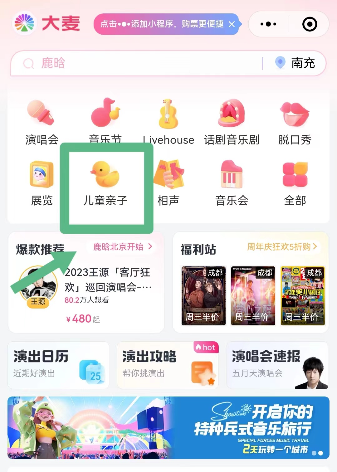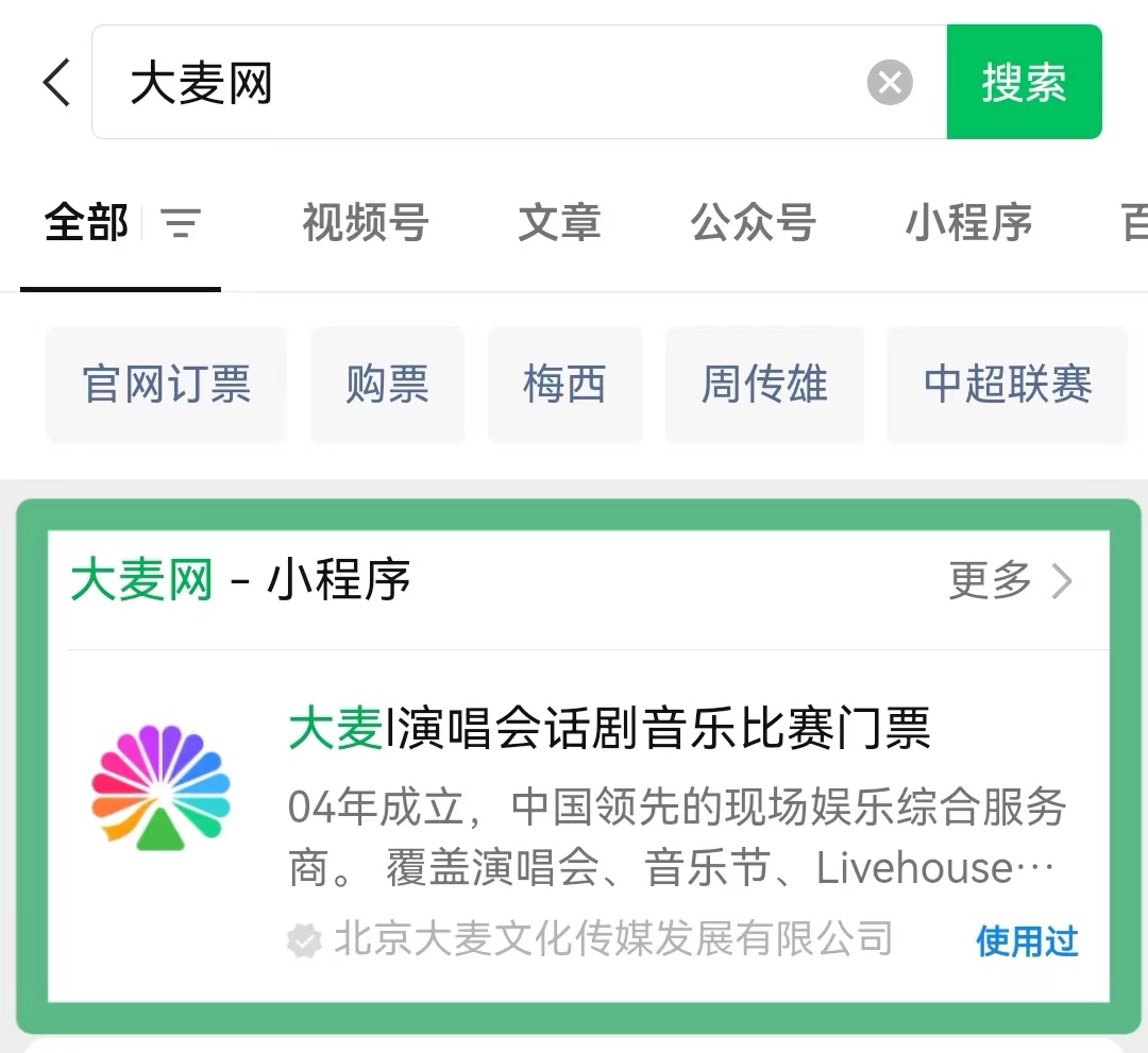 微信搜索“大麦网”小程序