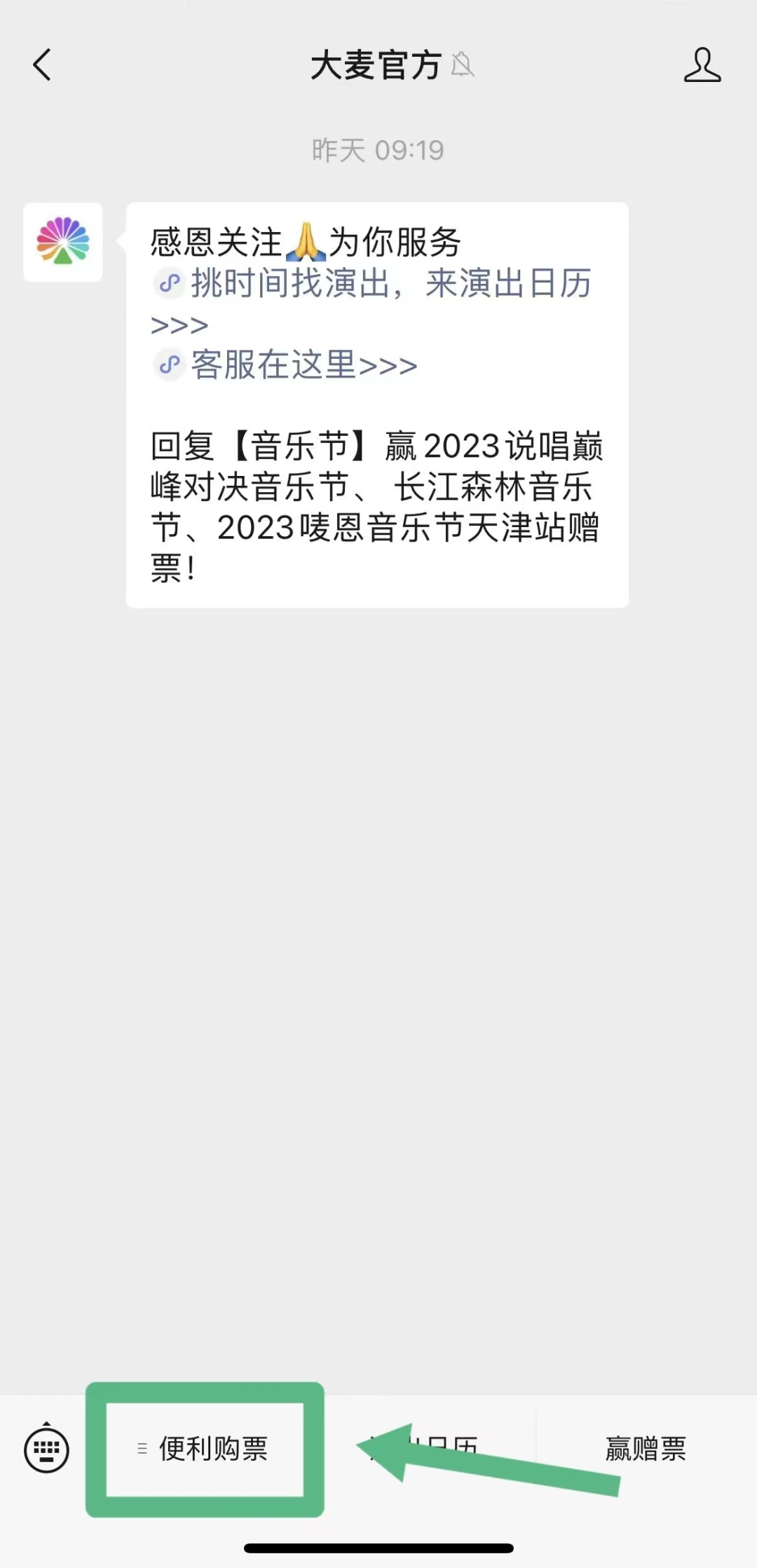 “大麦网”微信公众号