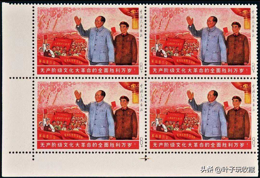 无产阶级文化大革命的全面胜利万岁邮票,俗称“大一片红”,未发行,是新中国最著名珍邮之一。在2018年国内拍卖会上,以1380万成交。早在2004年,一枚中上品,有修补,带销戳的成交价已高达280万元。
