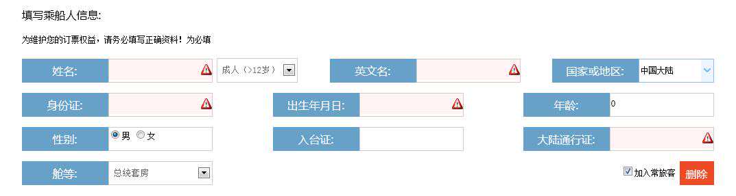 5、填写订单。(分别填写乘船人和订票人的信息)并同意《中远之星网络订票协议》,单击下一步。附订票协议网址: