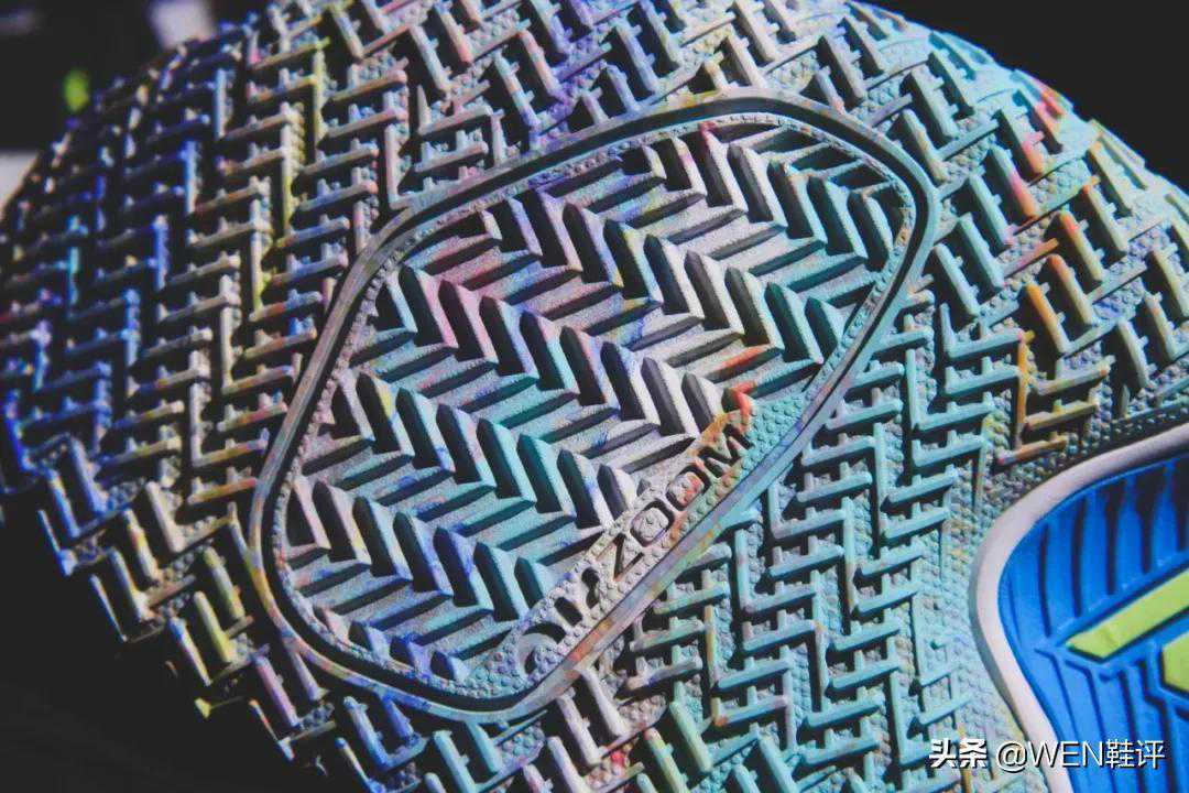 中底方面,前掌的扇形Zoom+全掌的Phylon,非常威少化的一个配置了,通过外底的纹路可以清晰地看出气垫的面积。作为一双支线鞋,这个气垫面积比作为签名鞋的Freak2还要大……这样的配置真是逼得人要真香啊。