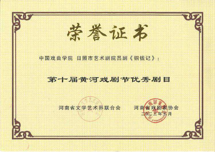 吕剧《铜钱记》参加第十届黄河戏剧节展演并荣获“优秀剧目”“最佳演员”两个奖项。