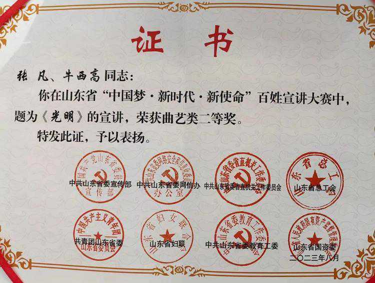 日照市艺术剧院演员在山东省“中国梦·新时代·新使命”百姓宣讲大赛中获曲艺类二等奖