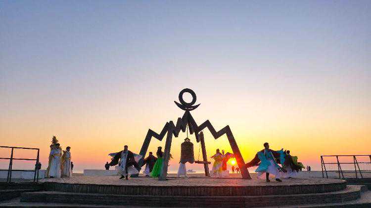 2023年冬季岁末年初的每个周六、周日,日照市艺术剧院均会在万平口演艺广场开展常态化迎日祈福活动。不断丰富着“迎日祈福”这一日照文旅品牌内容,以实际行动践行着文艺工作者“以文助旅”的使命担当。