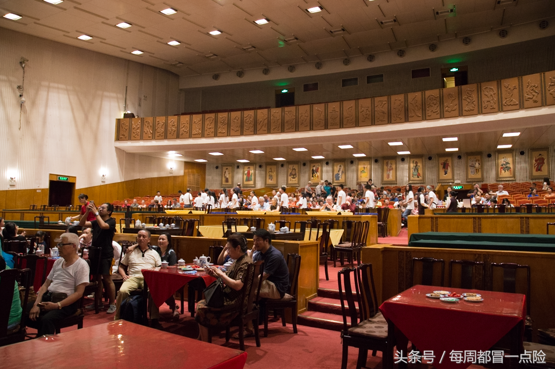 座位分为前排的八仙桌(138元起)和后排的排座(88元起)。八仙桌就跟传统老戏园那些,一张方桌摆上茶和小点,四周八张椅子。排座就是低配版电影院、高配版阶梯教室的座位。