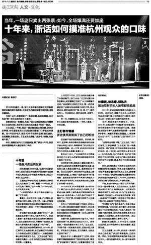浙江话剧团有限公司董事长王文龙这样认为,作为一座有着丰富人文历史的城市,这里的观众有自己的文化格调和追求。与这座城市息息相关的文人和地标,对他们而言是无比熟悉的,而这些文人和地标背后的故事,又有一些是他们不知道的。在这知与不知、熟与不熟之间,话剧有了它的生存空间。