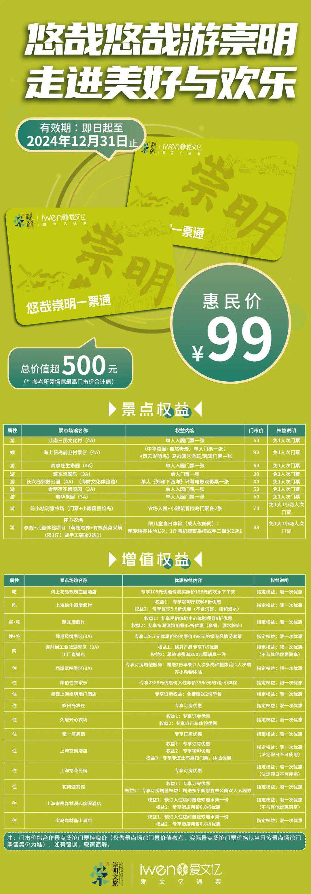1、2024《悠哉崇明一票通》使用有效期是什么时候?