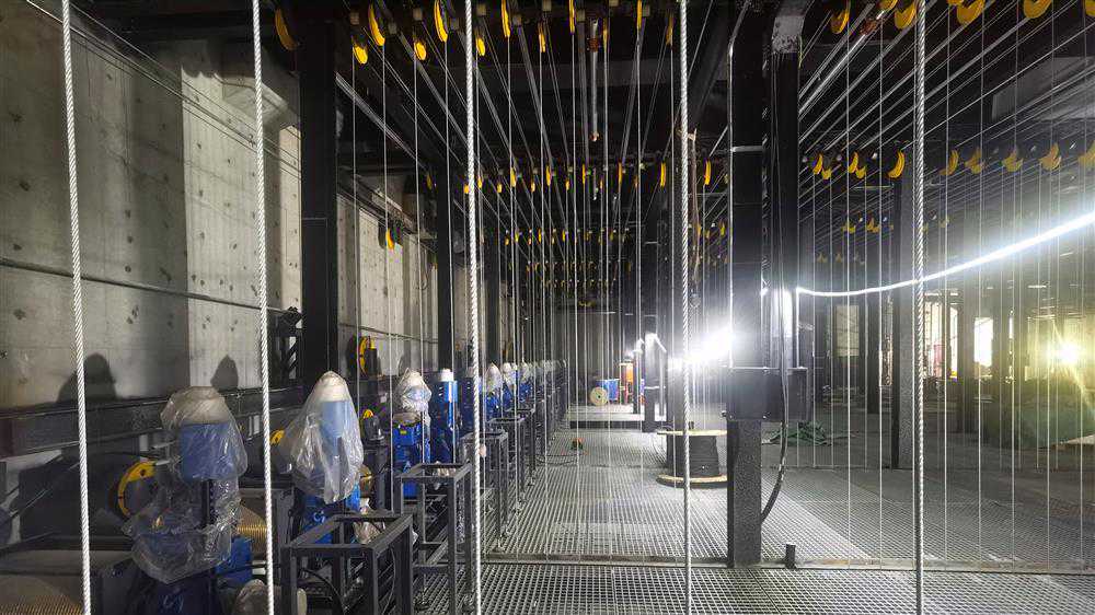 在北京艺术中心,浙江大丰实业股份有限公司工程中心华北区域总经理严洲斌带记者参观了即将完工的歌剧院和戏剧场。歌剧院主舞台上空28米高,是一层钢格栅搭起的“舞台栅顶”。这里竖直排列着多到数不清的钢丝绳,宛如一座钢铁丛林。钢丝绳上端,连着用来牵引的运景吊杆机构;下端,则悬吊着65道24米长的电动吊杆。这些吊杆将被用来悬挂各式布景,横亘在舞台上空。