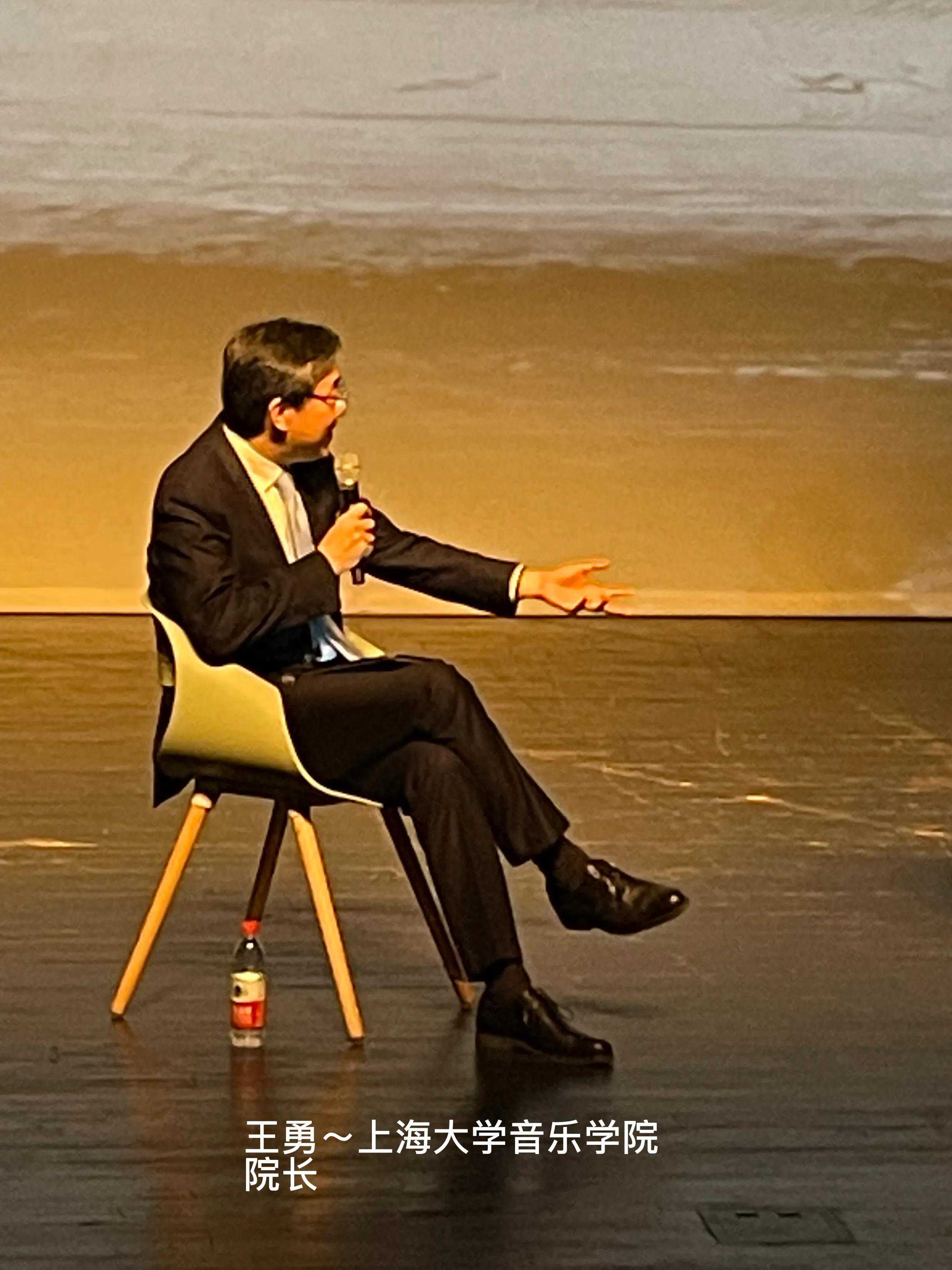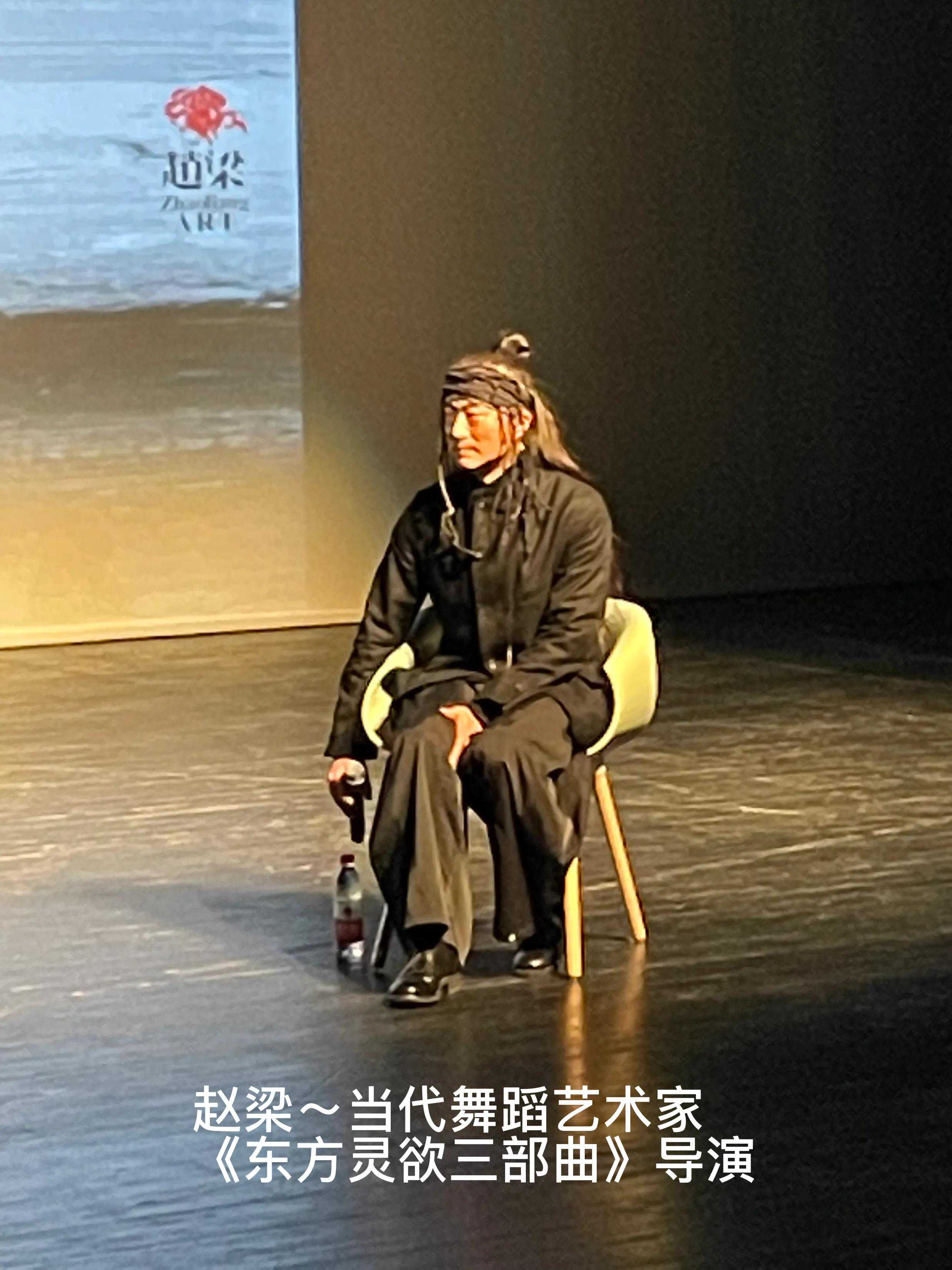 整场讲座一个多小时,人物四位,主持人上海大学音乐学院院长王勇;剧作家、剧场导演、社会编舞家、艺术行动者张献;青年戏曲男旦演员、梅派第三代弟子,也是《双下山》主演董飞;当代舞蹈艺术家、三部曲导演赵梁。谈到到底是导演塑造了角色,还是角色需要演员,赵梁说了一句话:“