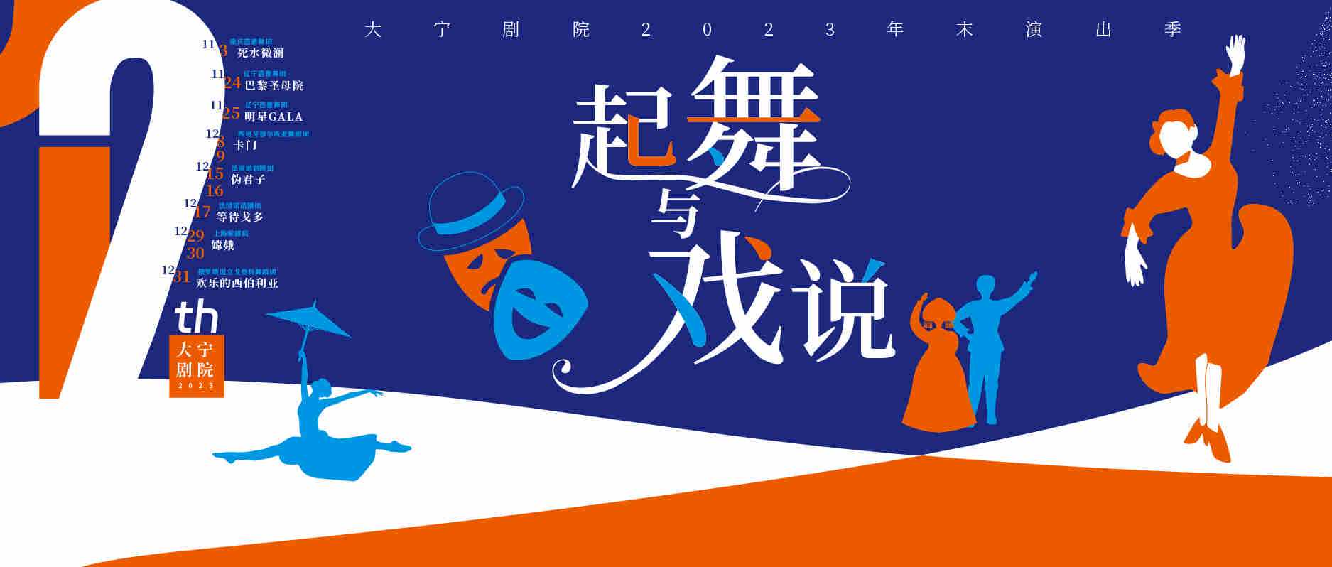 《等待戈多》中,爱斯特拉冈说“先跳舞”,默契地呼应了大宁剧院2023年末演出季的主题“起舞与戏说”。不论是舞剧还是话剧,演出季剧目均以经典的扎实文本与名团的实力创作作为支撑,八部精品,铺锦列绣,期待为观众带来精彩纷呈的艺术盛宴。
