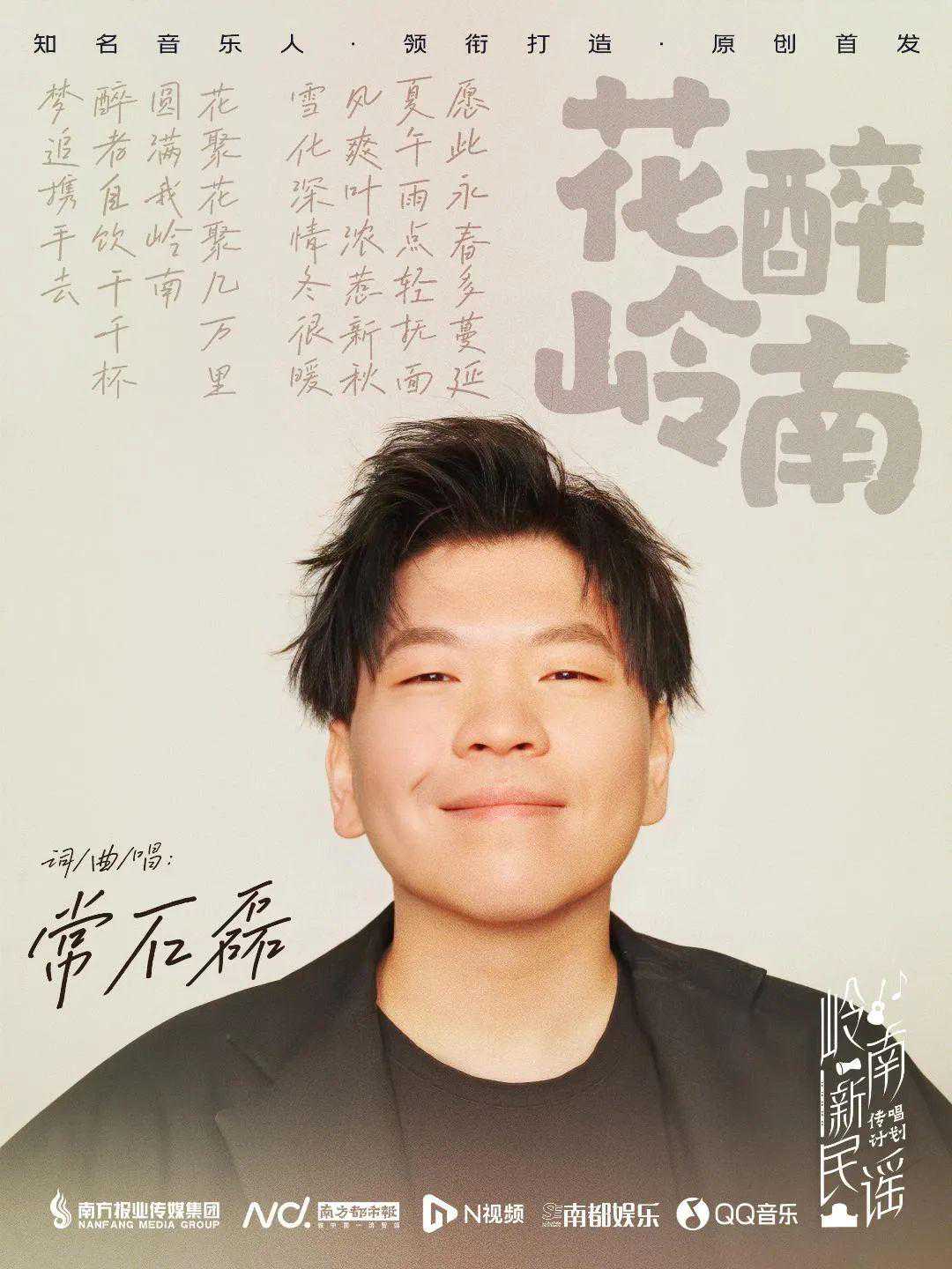 《花醉岭南》由知名歌手、音乐人常石磊创作及演唱,特别使用了普通话和粤语两种表达,以岭南地区各色花卉入歌,旋律则启发自他从小在广州成长过程中听到的各式岭南曲调。写繁花盛开,绵延万里,颂四季流转,自成风景,寄寓了岭南人民对生活的美好祈盼。继《湾》之后,《花醉岭南》是常石磊对成长之地的又一次深情歌咏。