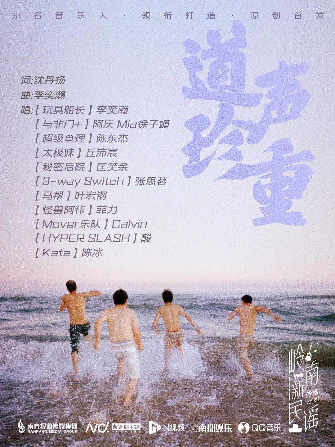 玩具船长联袂与非门+、太极妹、3-waySwitch、Kata、超级查理、Mover乐队主唱共唱《道声珍重》。除了大海的气息、唐阮的韵律,作品在尾端加入一群人的呼喊,有潮汕话、客家话、粤语等。互道珍重是诚挚祝福,也是新年祈愿,唱出岭南新民谣的集体真挚和温暖声响。