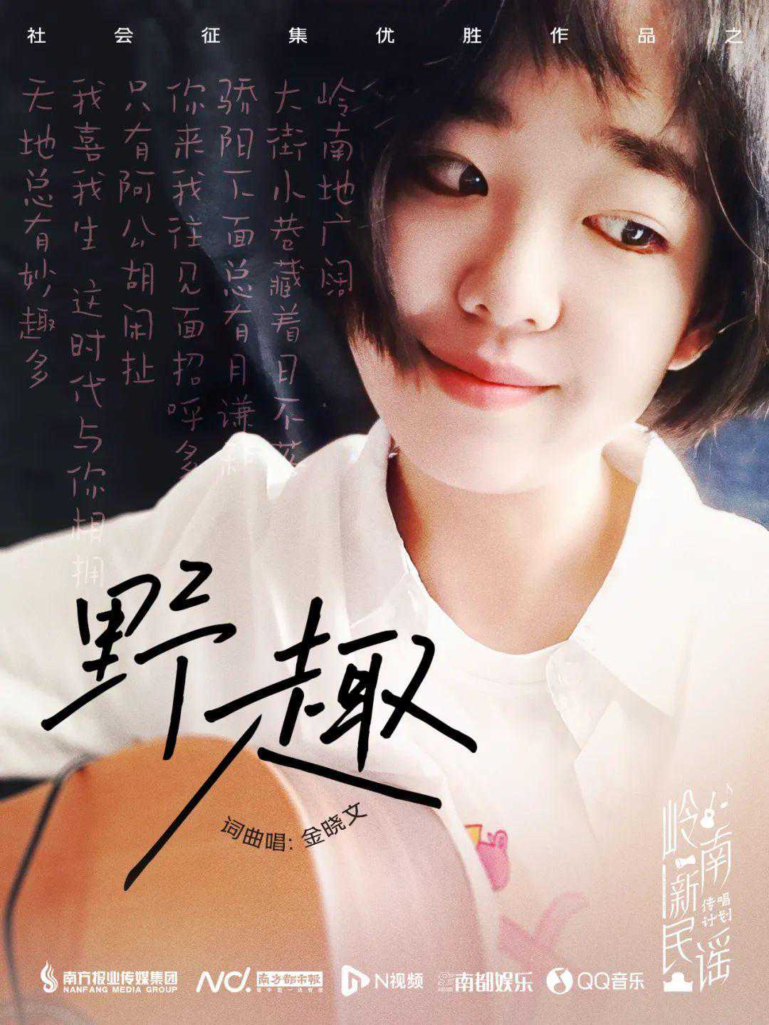 《野趣》由卧室独立音乐人金晓文创作,融入广东木鱼歌,用粤语演唱副歌。有趣的是,金晓文是北京人,本身不会说粤语,也未曾到过岭南,这首歌描绘了她对岭南的理解与想象,某种程度上亦反映出远方人们眼中的岭南:“岭南地广阔”“天地总有妙趣多”。她认为岭南是勇于改变、日新月异的宝地,文化多元而有趣。远方的人写岭南、唱岭南,为岭南新民谣增添又一种新鲜视角。