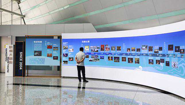 经过数月改造的杭州大剧院南北大厅,正式揭开神秘的面纱。此次改造较大的是剧院北大厅,新增了多个功能区块。从北4门走进剧院,映入眼帘的是承载着二十年岁月的历史沿革墙,通过建设历程、月亮初升、链动发展、跨越前行、悦来悦好五个篇章,展现了杭州大剧院历年来的大事记,很多建造时期的珍贵照片是首次对外亮相。此外,历史沿革墙还呈现了近二十年间曾经在大剧院上演过的重要演出,对于杭城的铁杆戏迷来说,绝对是“回忆杀”。