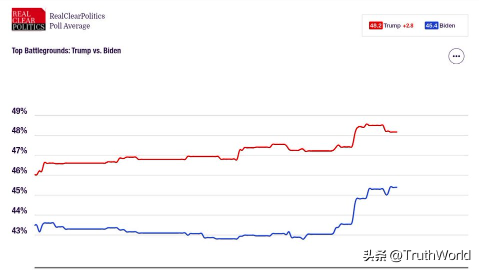 然而,尽管特朗普在多个摇摆州都领先拜登,且总体领先幅度高达2.8个百分点,但是,由于近期美国经济情况逐渐好转,美国民众对拜登的支持度也有所上升——拜登正在缩小与特朗普的差距。