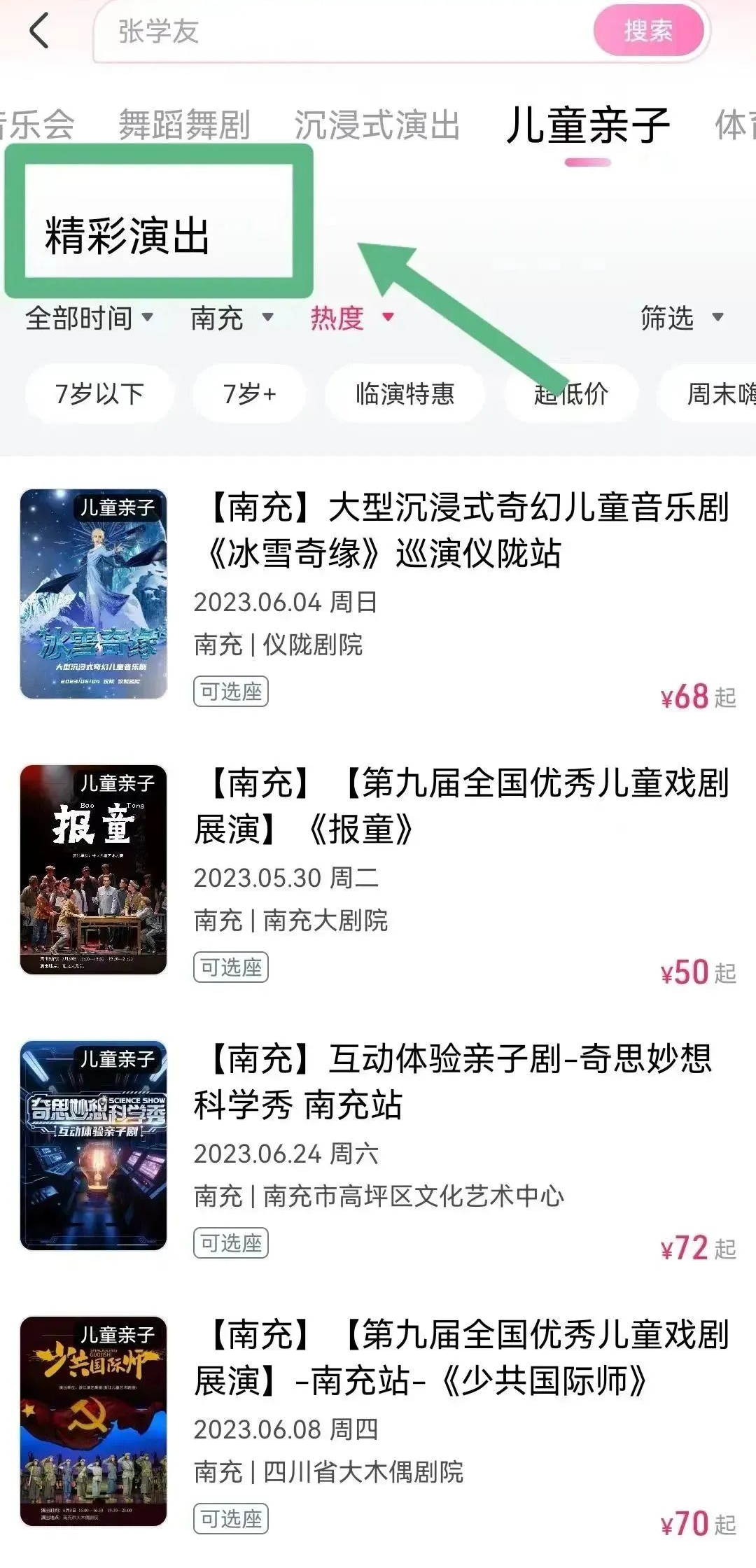 在精彩演出栏目下