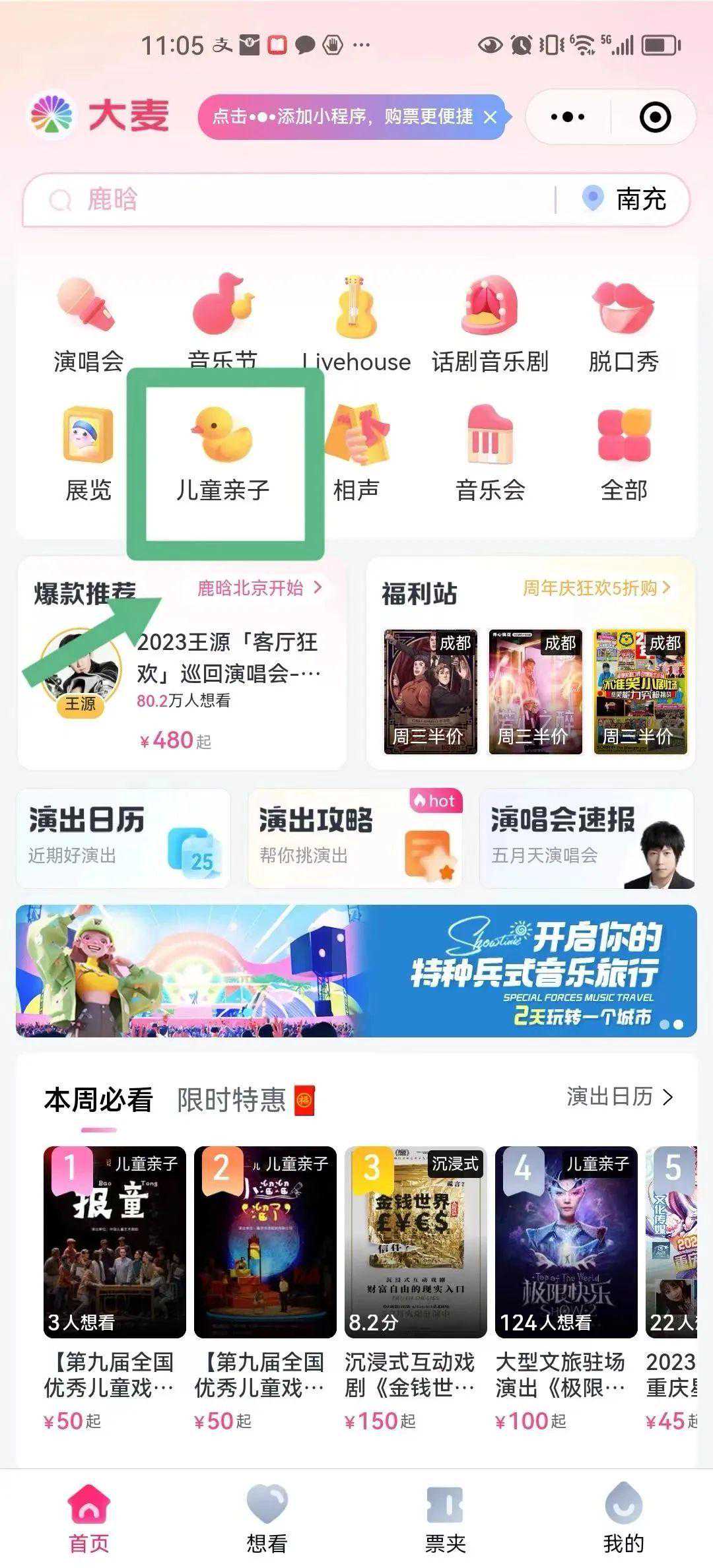 微信搜索“大麦网”小程序