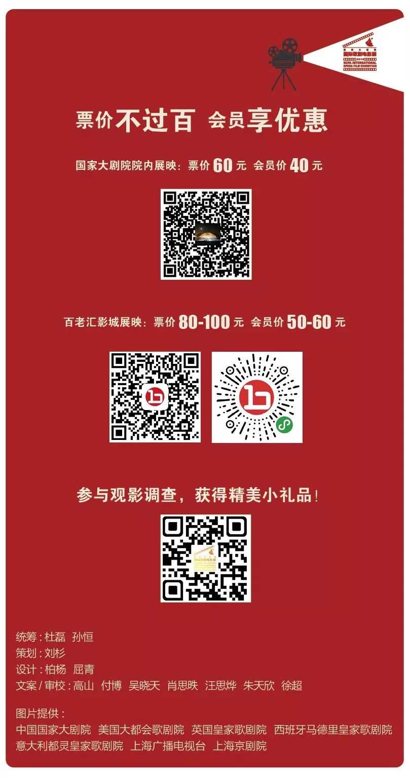 今年影展,中国国家大剧院、美国大都会歌剧院、英国皇家歌剧院、西班牙马德里皇家歌剧院、意大利都灵皇家歌剧院、上海广播电视台、上海京剧院带来了14部精彩影片。