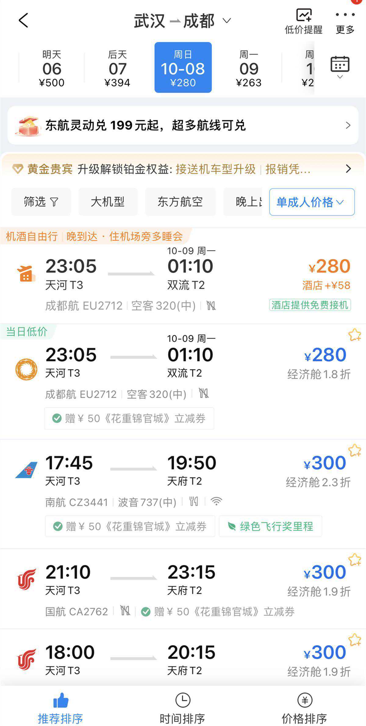除了国内航班,节后出境机票价格也出现明显下降。以香港为例,10月6日武汉至香港机票价格为1813元,10月10日则仅需671元。
