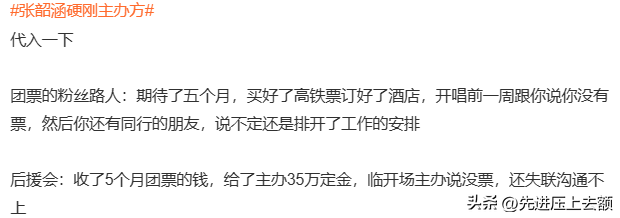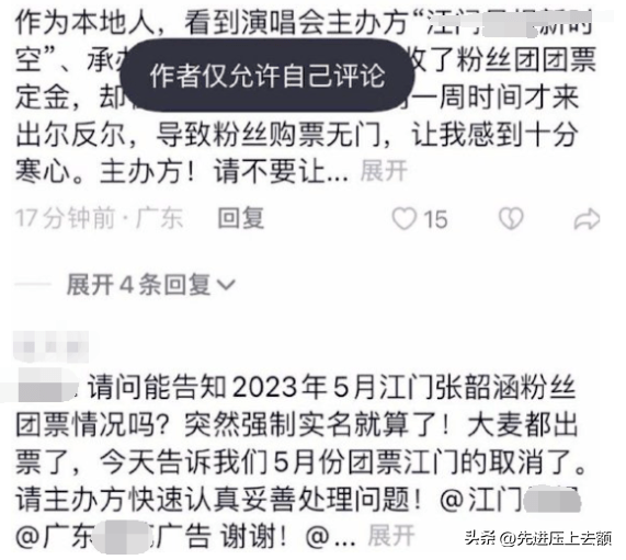 当时粉丝们不能只求门票,因为很多粉丝是从外地赶来的,机票和酒店都已经订好了。不过,主办方回复称门票已售完,并没有透露粉丝俱乐部取消的消息。团体票被强行取消,没有任何补偿或道歉。一位粉丝进来并生气了。他们交了35万押金,开场前却没有票……