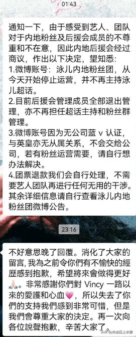 对此,艺人工作人员回应:我们很遗憾失去了大家的支持,但我们会尊重大家的决定。