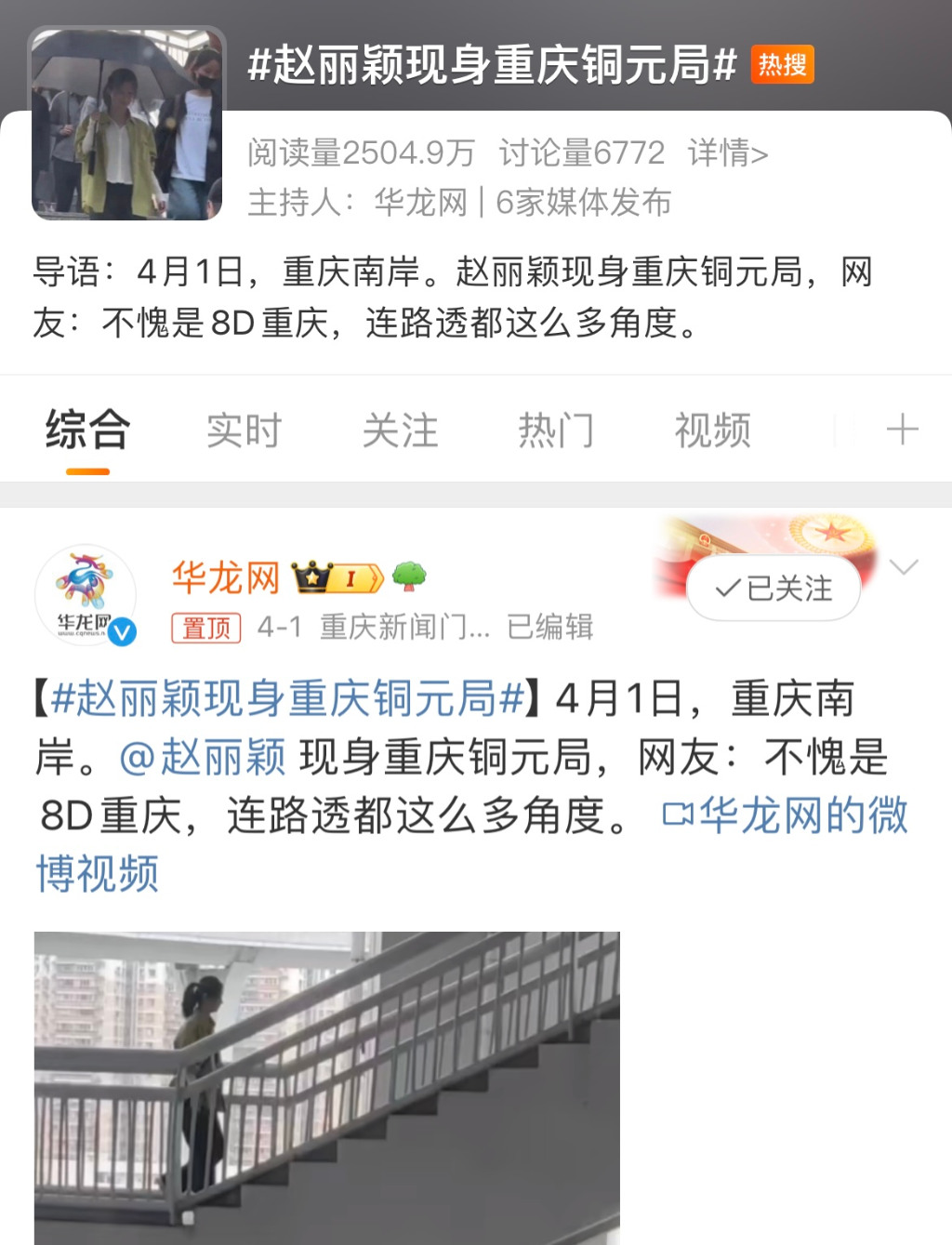 赵丽颖现身重庆上热搜。网页截图