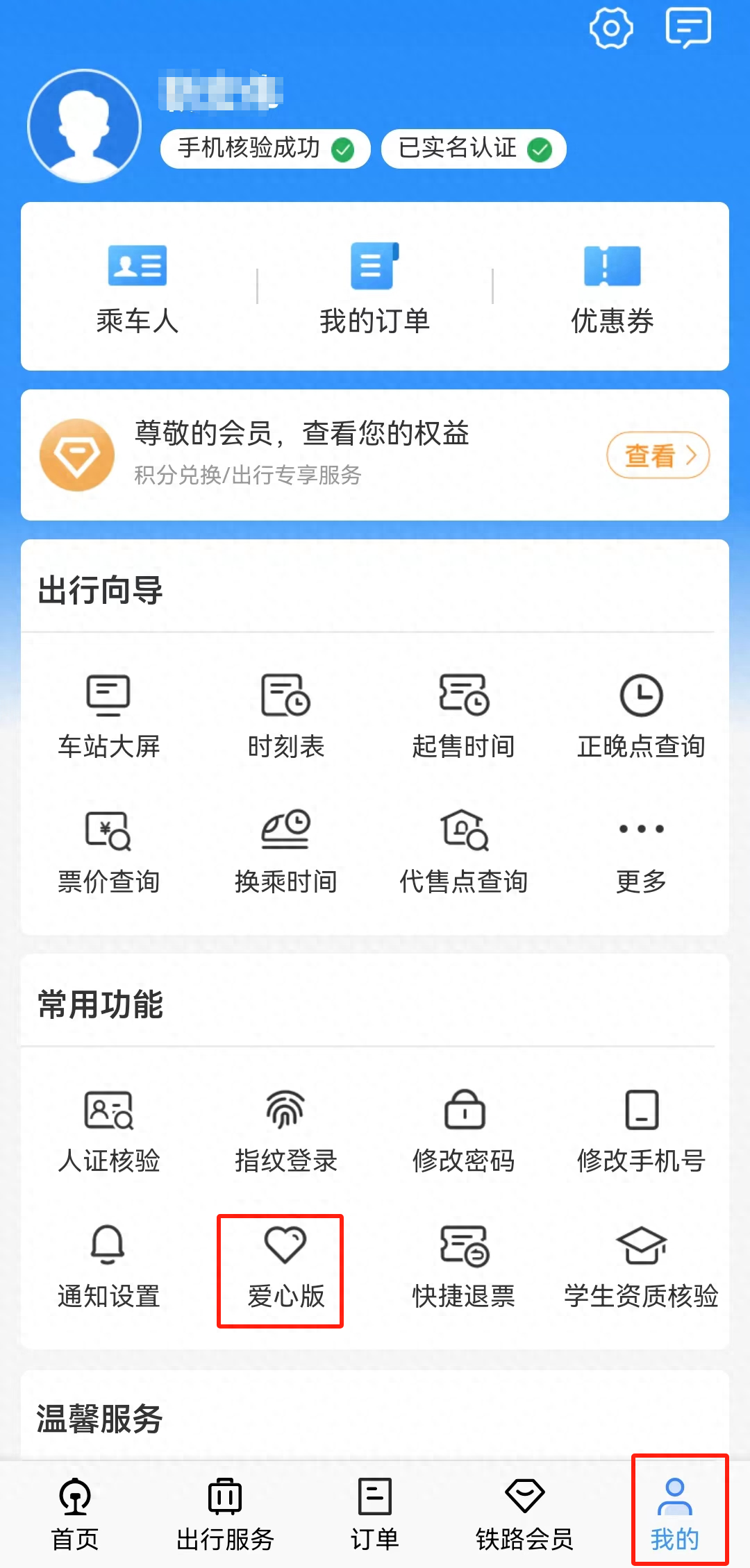 铁路12306App“爱心版”