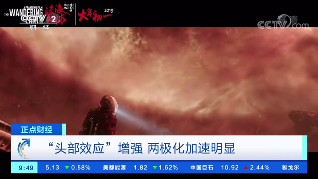 据统计,2019年票房收入前十的影片占全国总票房的45.2%,比去年有所提高,即少数影片分走了更高的票房比例,头部效应愈加凸显。而另一方面,今年票房收入在100万以下的电影数量也由2018年的39%提高到了44.5%,这表明越来越多的“小片”票房难以突破百万。不过业内专家表示,虽然今年国产电影大有所为,但是中国电影市场仍旧存在发展不平衡、不充分的矛盾。