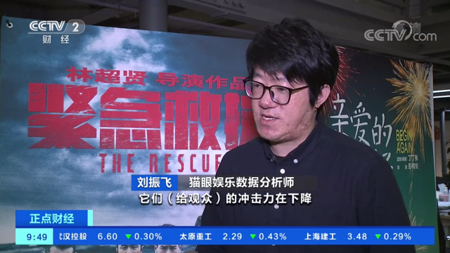 猫眼娱乐数据分析师刘振飞:观众看了好莱坞大片有很多年了,它们的冲击力在下降,感知力在下降,所以这也是为什么今年很多进口大片并不是那么的卖座的一个很重要的原因。我们国产电影的剧情更贴近民情,更有这种文化上的一个同缘的优势。对于一个整个高达600亿的大盘,以及17亿观影人次的一个市场来说,我们还在稳步的增长。