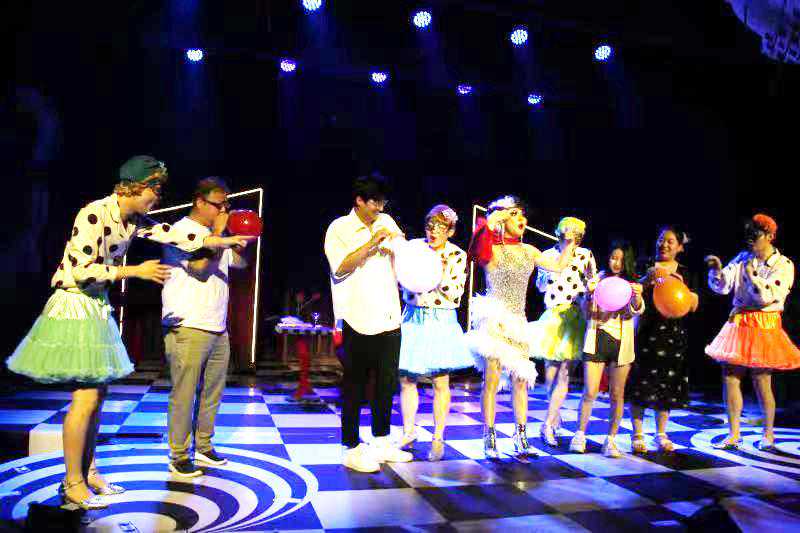 (演员与观众在台上互动)